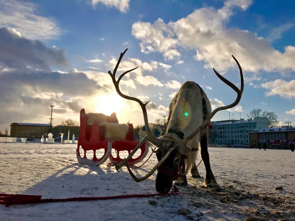 Катание на санях с Оленем с Дед Морозом и вручение подарков