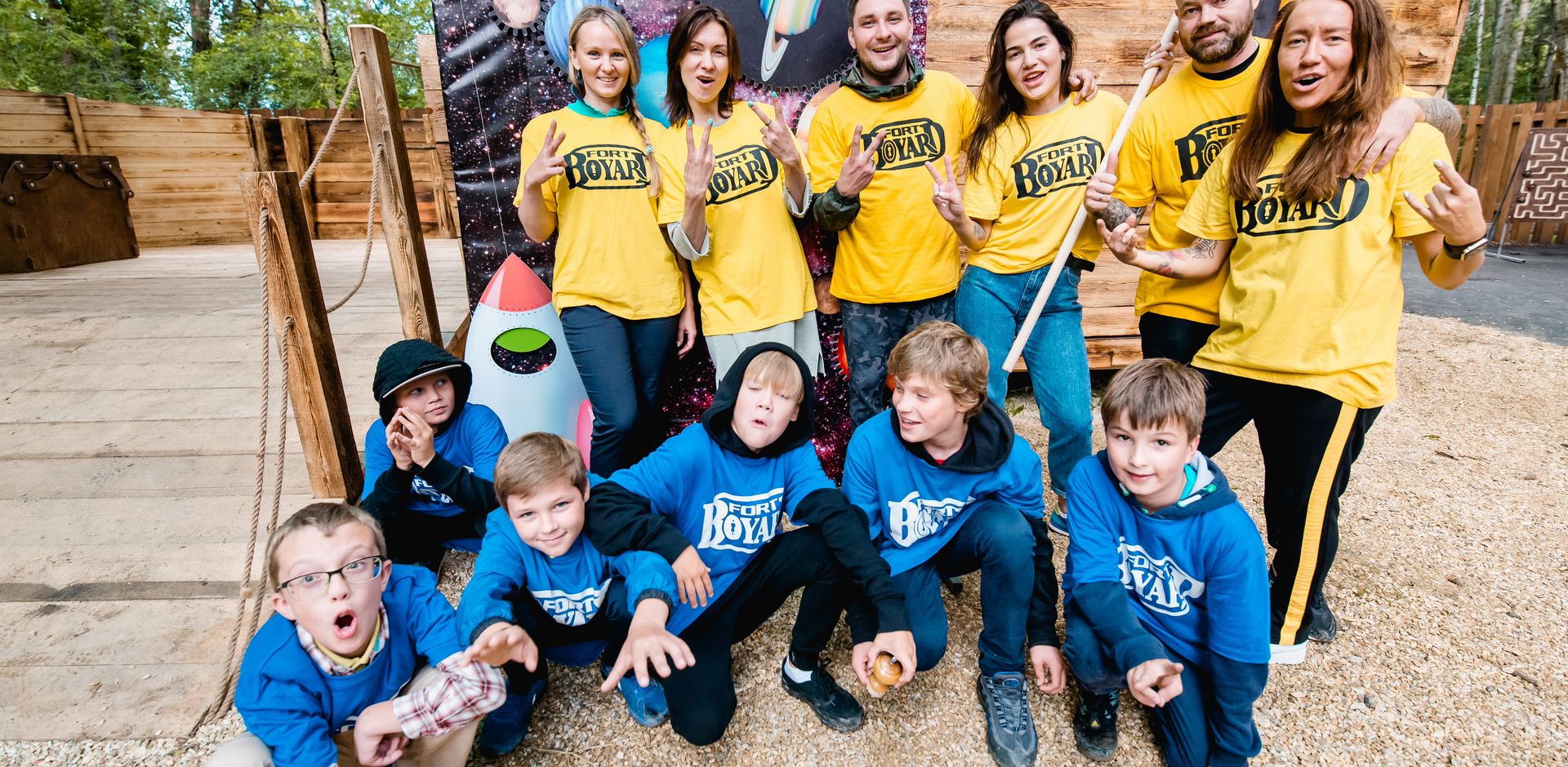 Взрослые проходят в банкетную зону. Детей встречает ведущий и участники попадают на Форт Боярд, где их ожидают очень страшные, опасные, командные и самое главное - эмоциональные испытания.